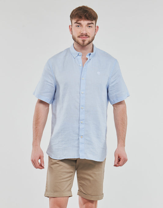 Camicia a maniche corte Uomo Timberland SS Mill River Linen Shirt Slim Blu