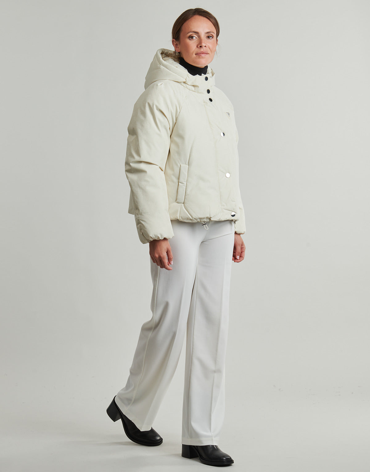 Piumino Guess 4G BOXY PUFFER Beige Disponibile in misura donna. EU S,EU M,EU L,EU XL,EU XS. .Donna > Abbigliamento > Piumini..